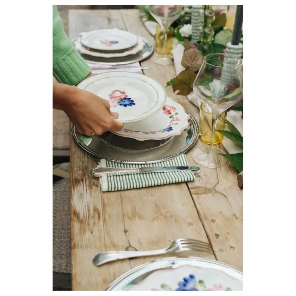 - L’assiette Gladys fleurie raconte la douceur avec des fleurs simples et apaisantes. Elle pose une table calme et élégante, prête à recevoir.