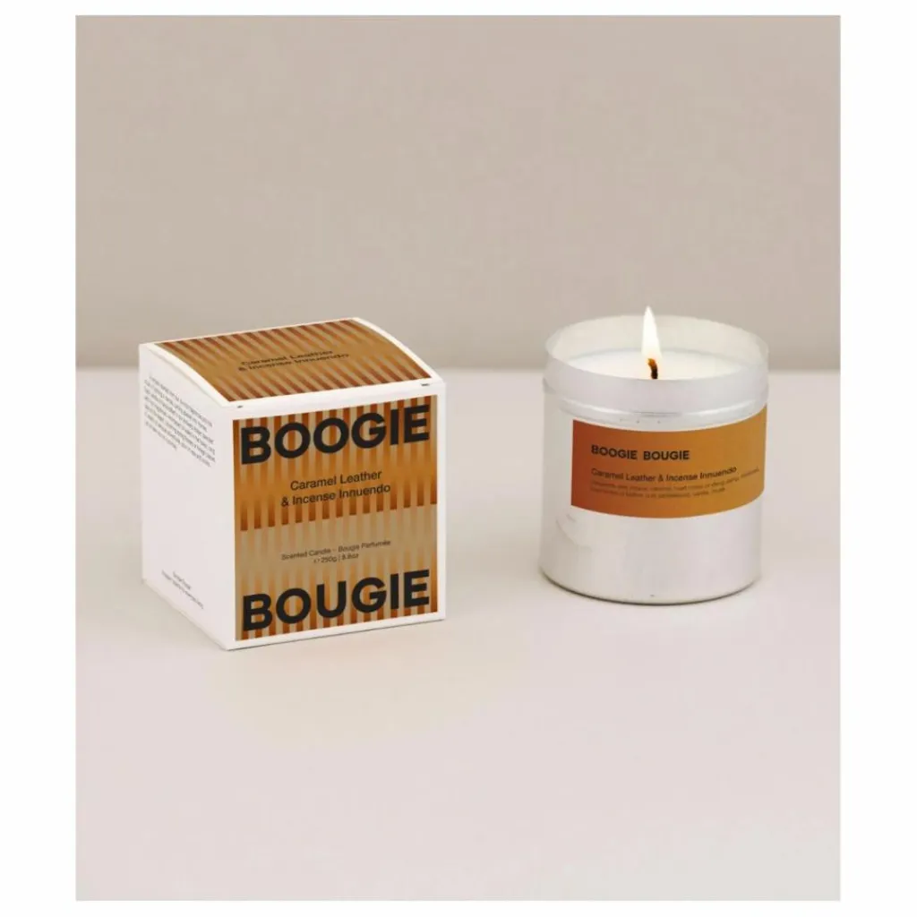 La bougie est parfumée aux notes de bergamote, poivre rose, caramel, ylang-ylang, encens, cuir, oud, bois de santal, vanille et musc, idéale pour la saison hivernale.