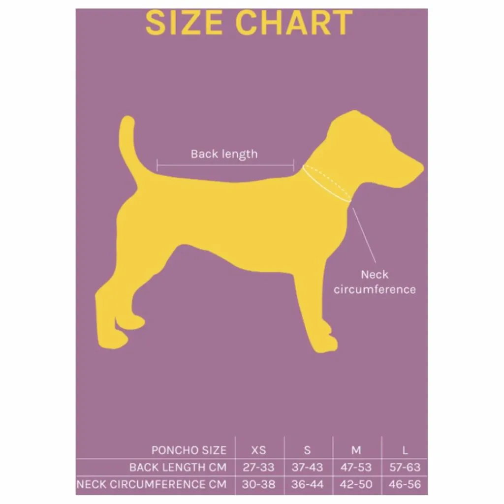 - Woof Woof. Découvrez notre nouvelle collection de ponchos pour chiens Rainkiss, disponibles en 3 imprimés étonnants et 4 tailles différentes, parfaits pour les chiens de toutes tailles. Nos ponchos pour chiens sont fabriqués en polyester 100 % recyclé de haute qualité et sont dotés d’une doublure en maille confortable. Les ponchos pour chiens sont dotés d’une sangle ventrale et d’une capuche réglables, ainsi que d’une ouverture pour la laisse à la base du cou et d’une attache supplémentaire pour une lampe lors des promenades nocturnes. Grâce aux bandes élastiques pour les pattes arrière, votre chien peut courir et jouer sous la pluie.