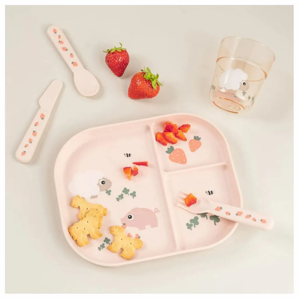 - • Set de couverts avec des bords arrondis pour que l’enfant puisse manger en toute sécurité
