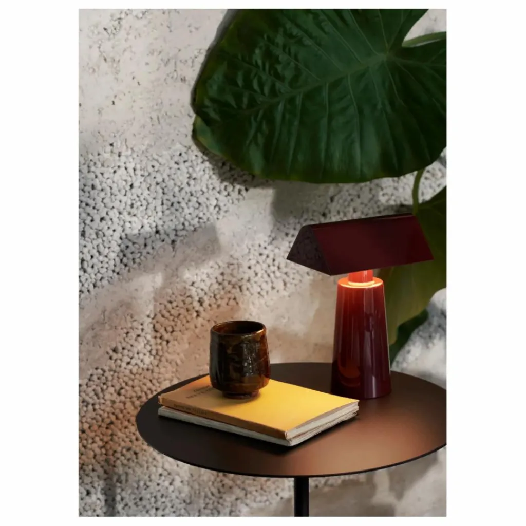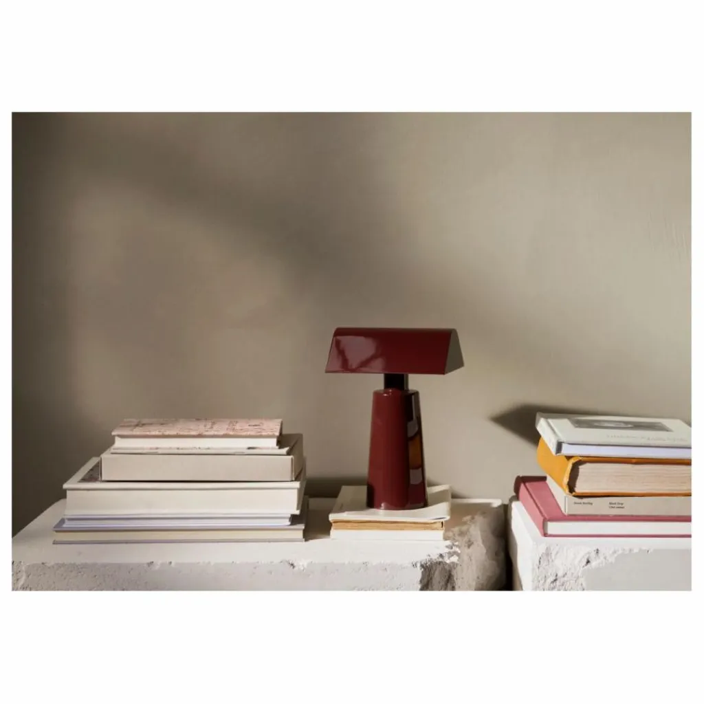 La lampe la Caret portable réimagine les silhouettes linéaires des modèles classiques à teinte verte – connus sous le nom de « lampes de banquiers » – que l’on trouve dans les bibliothèques historiques. Fabriqué entièrement en acier laqué, le design présente une base arrondie et un long sommet pyramidal qui émet une lumière douce et diffuse. La lampe est disponible en deux couleurs contemporaines, bordeaux et gris foncé.