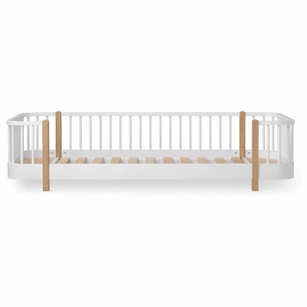 - Le lit au sol Wood Original, conçu pour les enfants dès deux ans, facilite l’autonomie grâce à sa faible hauteur. Ses dimensions de 90 x 200 cm offrent un espace confortable pour dormir et jouer. Avec ses bords arrondis, il assure sécurité et confort, et peut être équipé d’une barrière de lit vendue séparément. Ce modèle, livré avec des pieds en chêne massif huilé blanc, fait partie de la série Wood Original, adaptable selon l’évolution des besoins de l’enfant.