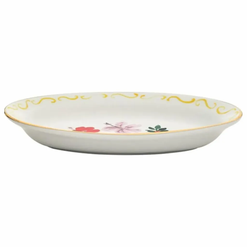 - plateau ovale avec décalcomanie et détails dorés, décorations appliquées à la main et détails dorés