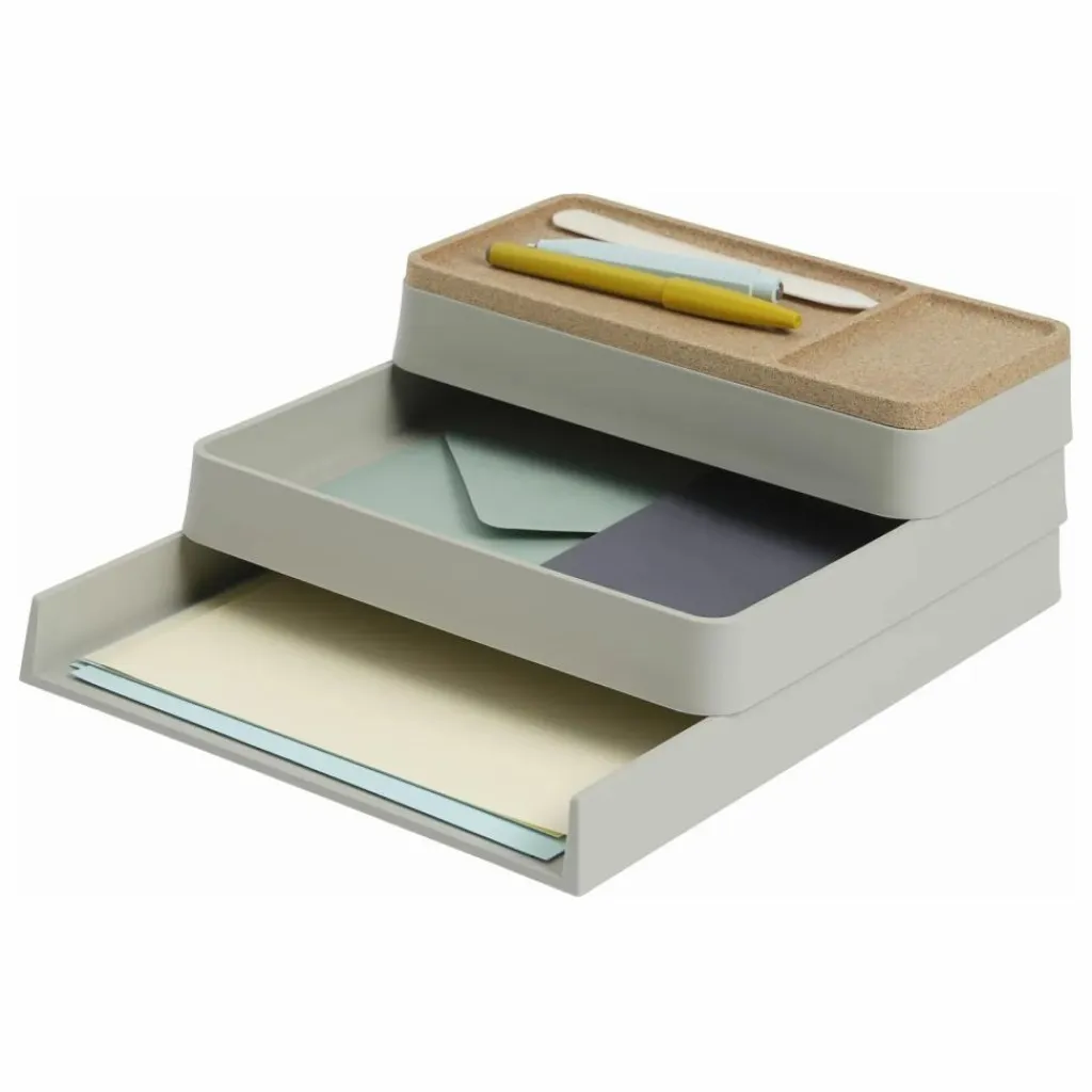 - La série Arrange Desktop est un design configurable qui apporte une fonctionnalité élégante au bureau à domicile et au lieu de travail grâce à son caractère ludique et à son expression architecturale. Avec ses plateaux en plastique 100% recyclé et ses couvercles en liège ou en aluminium anodisé, la série Arrange Desktop apporte une perspective durable au rangement moderne.