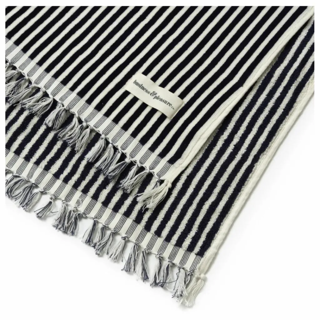 Cette serviette de plage, moelleuse, vous plongera dans une bulle de confort lors de vos escapades estivales. Matchez la avec votre parasol ou transat, en vente sur notre site. Les serviettes Business & Pleasure sèchent rapidement, sont durables et respirantes. Tissées à la main dans un grammage important en tissu éponge, leurs taille généreuse permettra à chacun de se relaxer avec style.