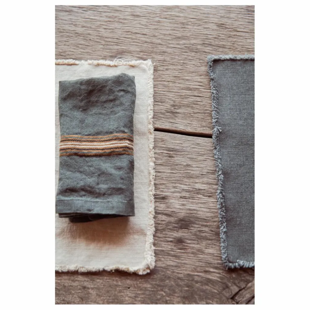 Kea, île des Cyclades, donne son nom à cette serviette de table au fond vert River, éclairci par deux rayures distinctes.