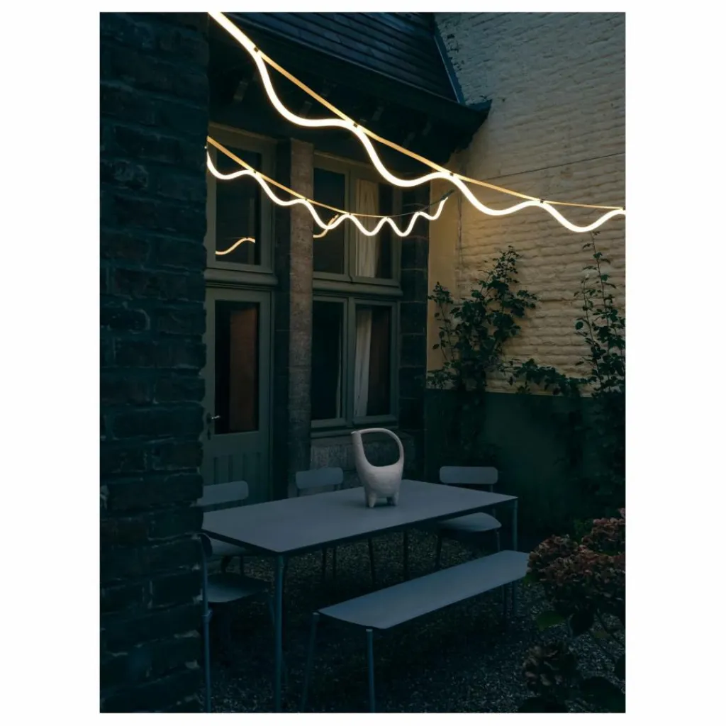 - SPLINE est une suspension LED polyvalente, idéale pour un usage intérieur et extérieur. Combinant une esthétique festive et minimaliste, elle se compose d’une bande textile colorée et d’une bande lumineuse continue. Disponible en deux versions bicolores (marron/orange et beige/bleu), chaque modèle mesure plus de 4,5 mètres. La conception modulaire permet d’enlever, de remplacer ou de personnaliser le mouvement de la bande LED double. La corde de 2,5 mètres permet d’ajuster la courbe de la suspension et de l’installer au plafond ou autour d’un arbre. Chaque détail, de la bande LED à la finition satinée, est soigneusement conçu.