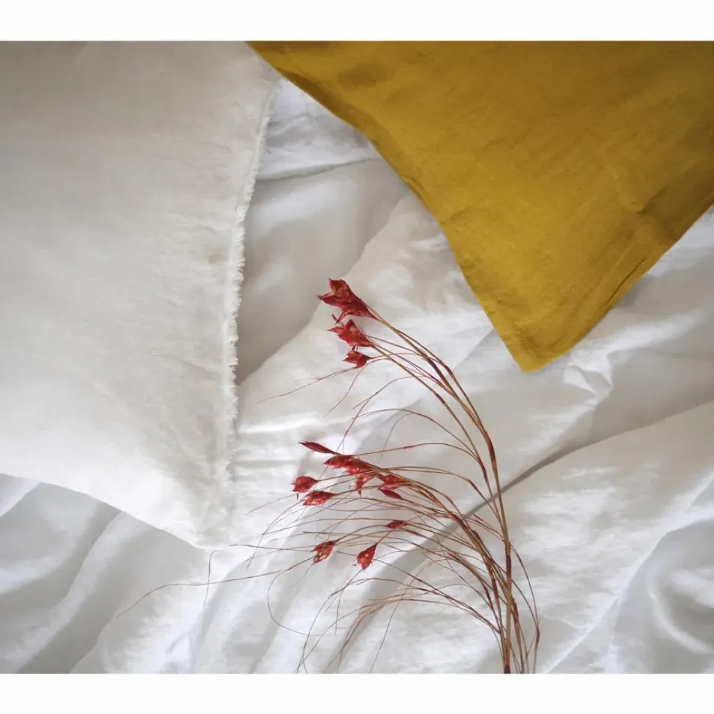 Vertus du Lin : Le Lin est une matière naturelle respectueuse de l’environnement. Thermique (frais l’été, chaud l’hiver) et Respirant il favorise un sommeil apaisé et réparateur. Cette matière très douce au toucher contribue au bien-être et à la détente. Facile d’entretien le Lin ne nécessite pas le repassage. Plus on le lave, plus il devient souple et doux au toucher.