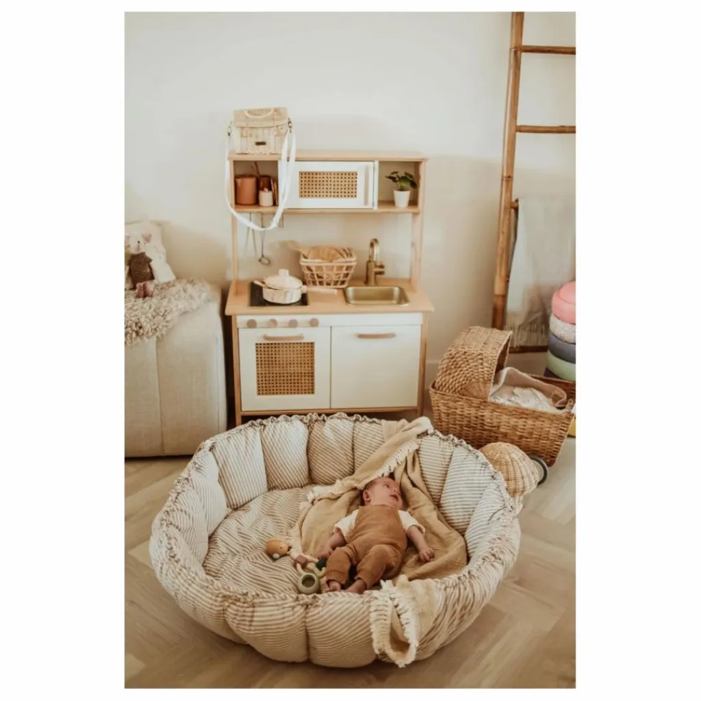 - Le Bloom à rayures bleues est un tapis de jeu 3-en-1 enchanteur qui évolue avec votre petit trésor. Lorsque les côtés à rayures bleues sont relevés, ils forment un berceau douillet avec des bords doux et protecteurs pour assurer la sécurité de votre bébé. Abaissez les côtés et le tapis de jeu s’ouvre, se transformant en un vaste espace de jeu moelleux, parfait pour le temps sur le ventre, le jeu supervisé et l’exploration. Le Bloom n’est pas seulement fonctionnel, il est aussi un ajout élégant à toute chambre de bébé ou salle de jeu, permettant de ranger les jouets préférés de votre enfant de manière ordonnée en un seul endroit.