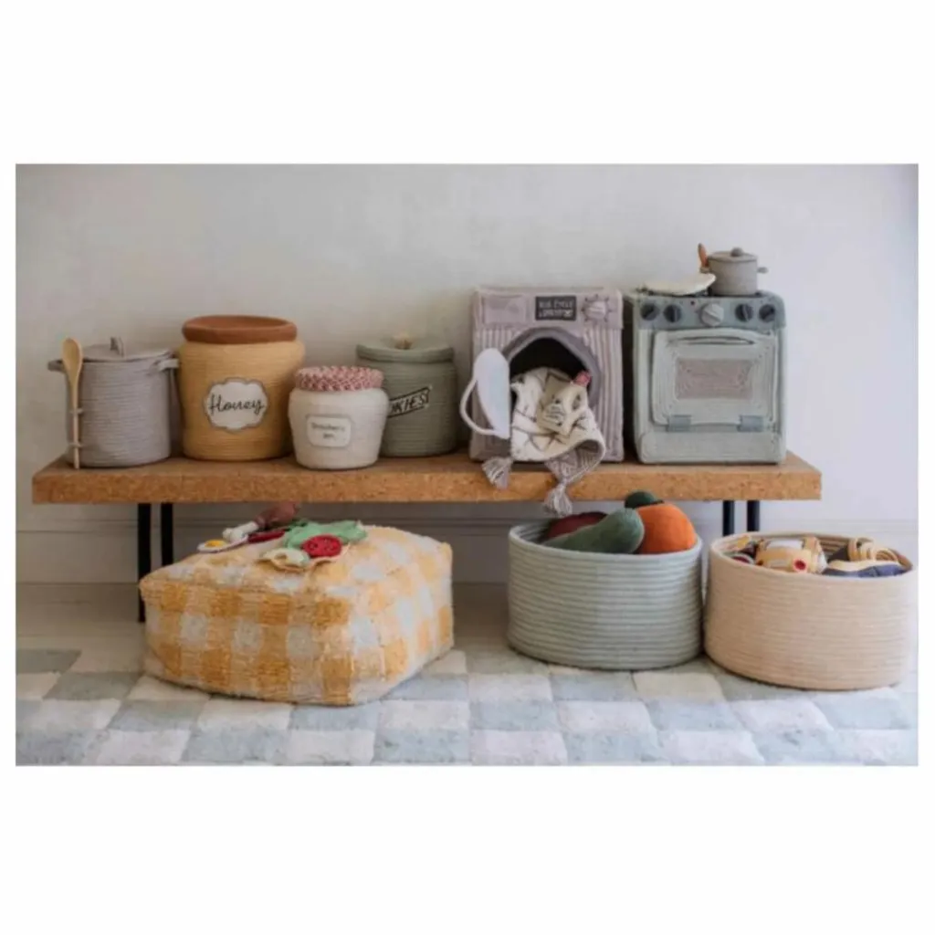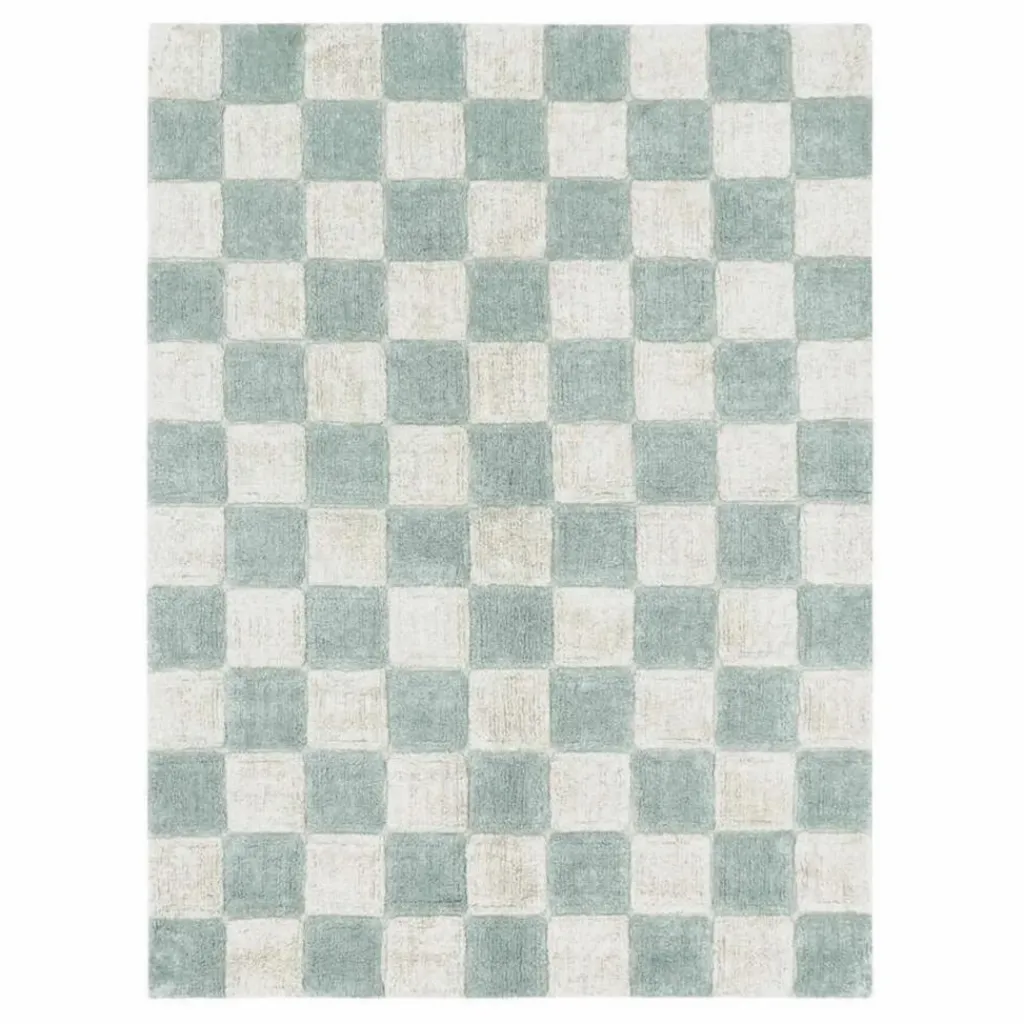 - Inspiré des sols en céramique vintage, le tapis Kitchen Tiles présente un motif à carreaux jouant avec un doux contraste de couleurs naturelles et bleu sauge. Le tapis utilisait notre base en mélange RugCycled / toile naturelle, laissant la base légèrement visible entre les carrés colorés simulant les carreaux de la cuisine.
