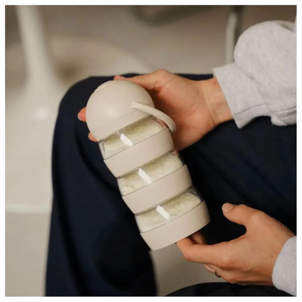 - Grande capacité et compartiments hermétiques : Les 3 compartiments sont 100% hermétiques et peuvent contenir chacun jusqu’à 11 doses de lait en poudre.