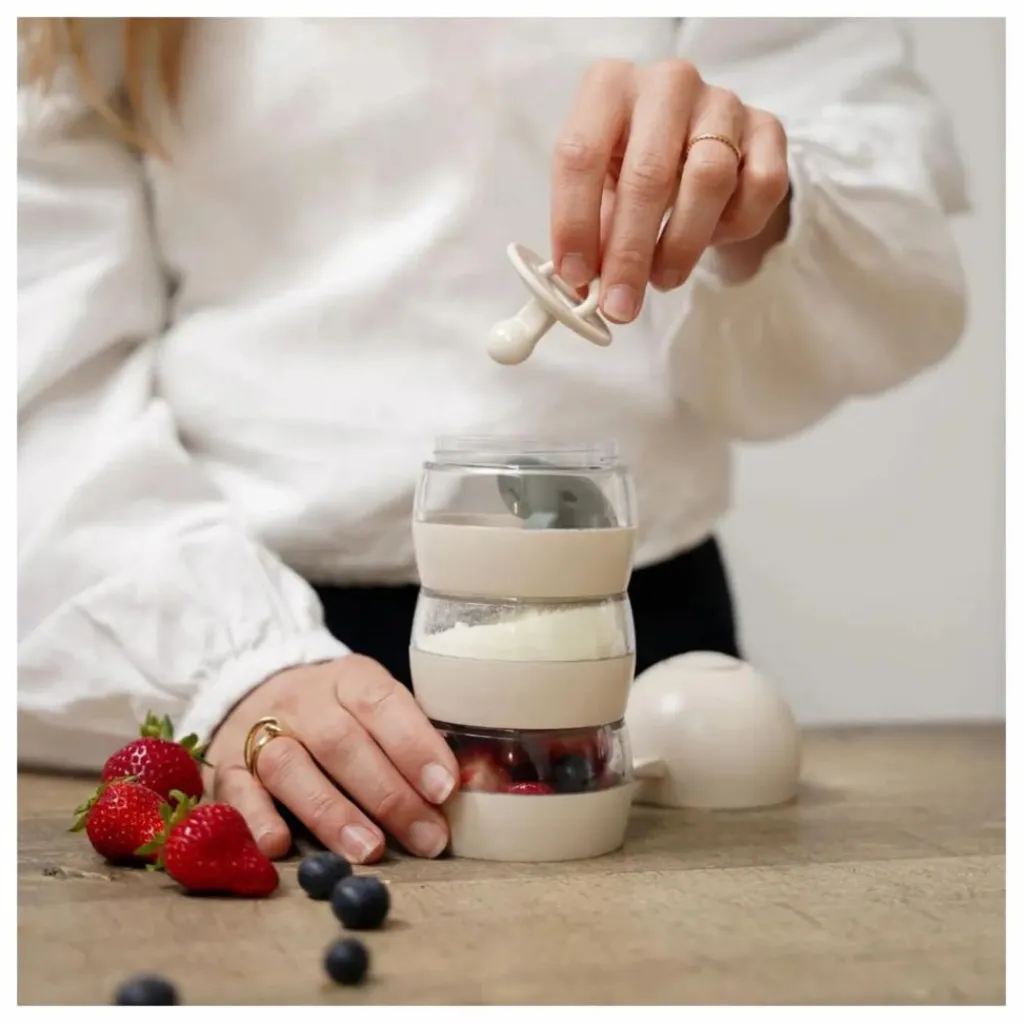 Évolutive en boîte à snacks : Pensée pour durer, la So Mimi se transforme en boîte à snacks ou boîte à tétine quand bébé grandit. Un seul accessoire, plusieurs usages.