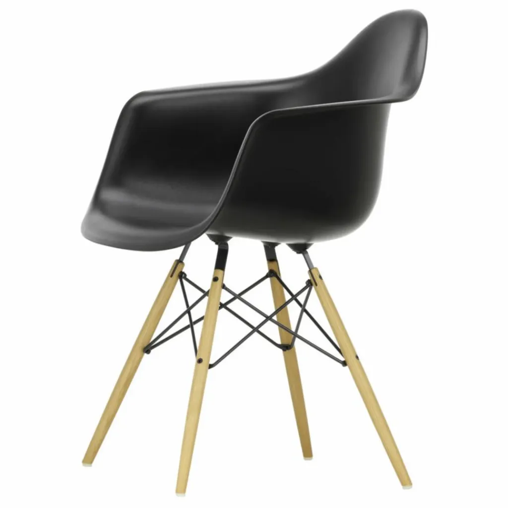 La chaise DAW (Dining Height Armchair Wood Base), conçue par Charles et Ray Eames, est un exemple emblématique d’un siège dont la coque peut être associée à différents types de piètements. Son piètement en bois crée un contraste intéressant avec la coque en plastique recyclé post-consommation. Cette combinaison de matériaux offre non seulement un aspect visuel attrayant, mais elle contribue également à la durabilité de la chaise en utilisant des matériaux recyclés.