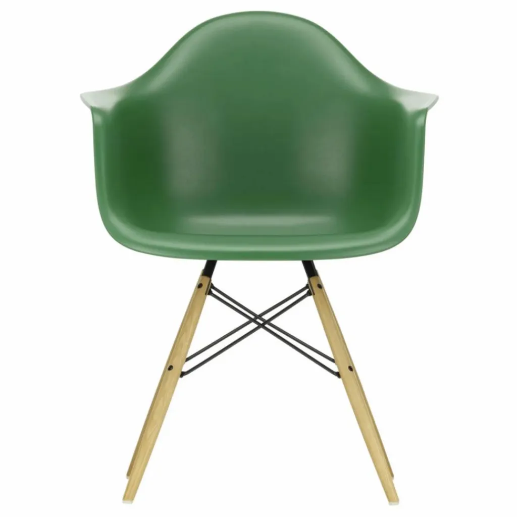 La chaise DAW (Dining Height Armchair Wood Base), conçue par Charles et Ray Eames, est un exemple emblématique d’un siège dont la coque peut être associée à différents types de piètements. Son piètement en bois crée un contraste intéressant avec la coque en plastique recyclé post-consommation. Cette combinaison de matériaux offre non seulement un aspect visuel attrayant, mais elle contribue également à la durabilité de la chaise en utilisant des matériaux recyclés.