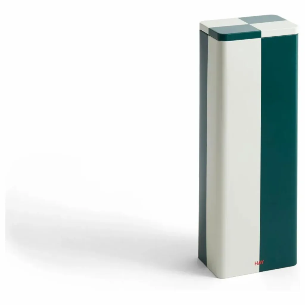 - Les Tin Containers de HAY sont une collection de boîtes de rangement fonctionnelles et décoratives, dotées de motifs à carreaux colorés et d’une finition brillante. Le couvercle et le récipient sont parfaitement alignés, ce qui donne un aspect élégant et homogène, tout en garantissant une fermeture hermétique adaptée à la conservation d’aliments secs. Disponibles dans un large assortiment de tailles, de formes et de motifs, les boîtes de conserve peuvent être placées de manière décorative sur des étagères ou des tables dans la maison pour ranger et organiser différents objets.
