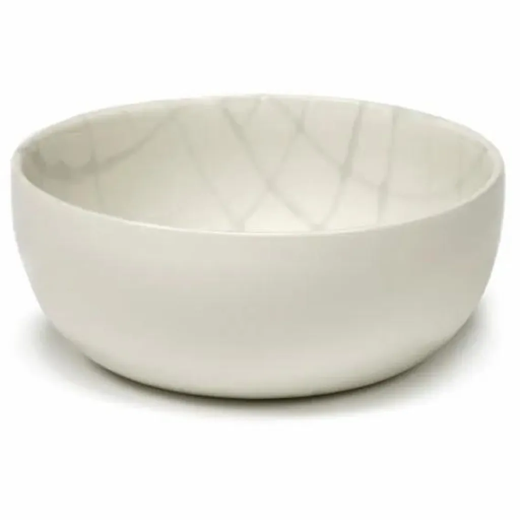 - Pour le service en porcelaine Zuma, Kelly Wearstler est partie d’un motif graphique numérique inspiré des principes du Bauhaus. Chaque motif est appliqué à l’aide d’un tampon afin de donner l’impression d’avoir été peint à la main, après quoi la glaçure est appliquée. Les motifs varient à travers l’assortiment, et les différentes formes et couleurs (blanc, gris foncé et orange) se combinent facilement.