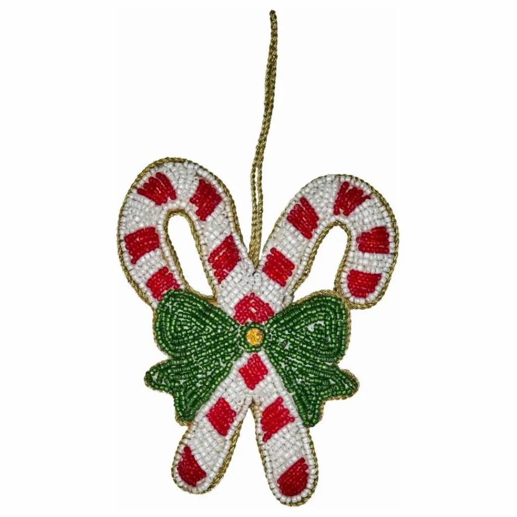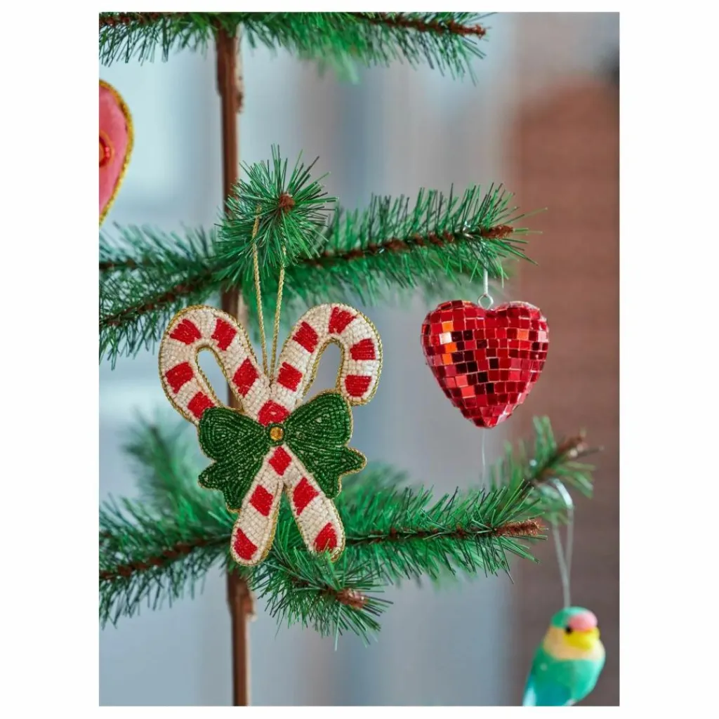 - Ajoutez une touche de magie de Noël à votre intérieur avec cette jolie décoration faite à la main. Fabriqué à partir de perles et en forme de deux sucres d’orge noués par un superbe nœud vert, il est plein de charme festif. Elle est parfaite pour décorer votre arbre de Noël, égayer une fenêtre ou ajouter une touche de douceur à votre table de fête.