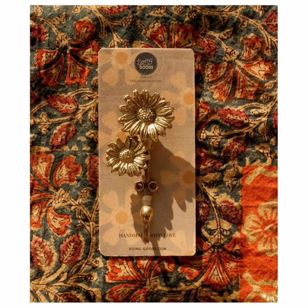 - Accueillez le printemps dans votre maison avec le crochet double Breezy Daisy, un charmant accessoire mural présenté sur une carte-cadeau. Ce crochet de taille moyenne (12 x 6 x 3,5 cm) est à la fois fonctionnel et décoratif. Il est orné de deux marguerites au design complexe et à la finition dorée brillante. Parfait pour ajouter une touche florale à votre pièce tout en gardant vos objets essentiels organisés, c’est un choix idéal pour tout amoureux de la nature.
