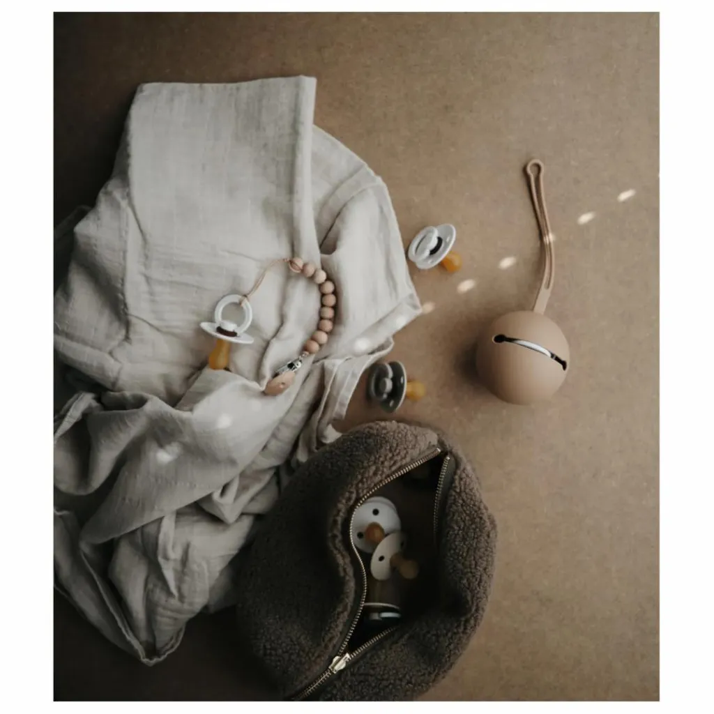 Protégez les tétines de votre bébé avec ce porte-tétines doté d’une sangle robuste qui s’attache facilement à un sac ou une poussette.