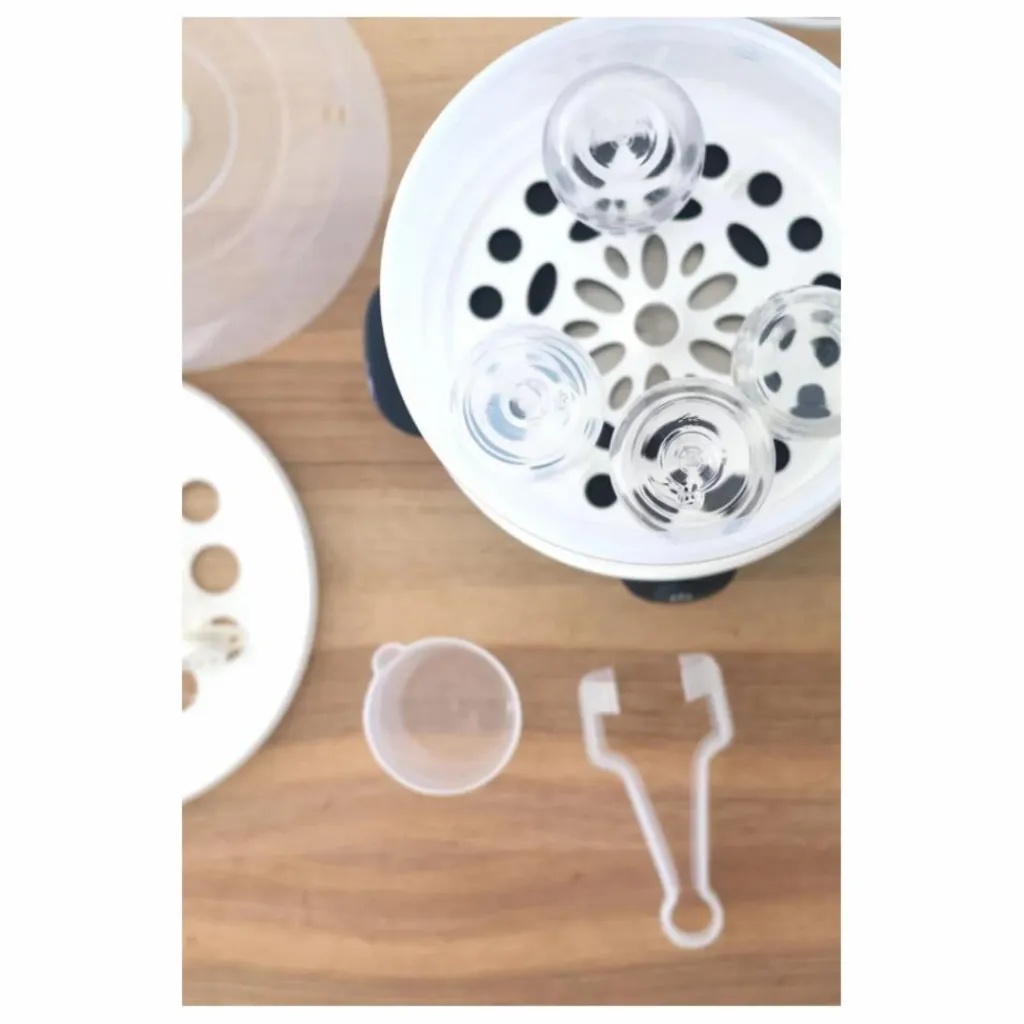 Utilisez le stérilisateur évolutif 2 en 1 Steril’express de Béaba pour stériliser les biberons, tétines et sucettes de votre enfant de manière efficace.