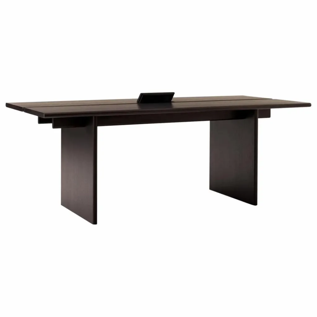 - Caractérisée par deux planches simples reposant sur de larges pieds en bois, la table de salle à manger Ita est une leçon de minimalisme construit. Transcendant la frontière entre les philosophies de design scandinave et japonaise, la table transmet un langage de design simple et épuré. Disponible en deux tailles et deux finitions – chêne et chêne teinté foncé – la table met en valeur la beauté inhérente et la tactilité du bois.