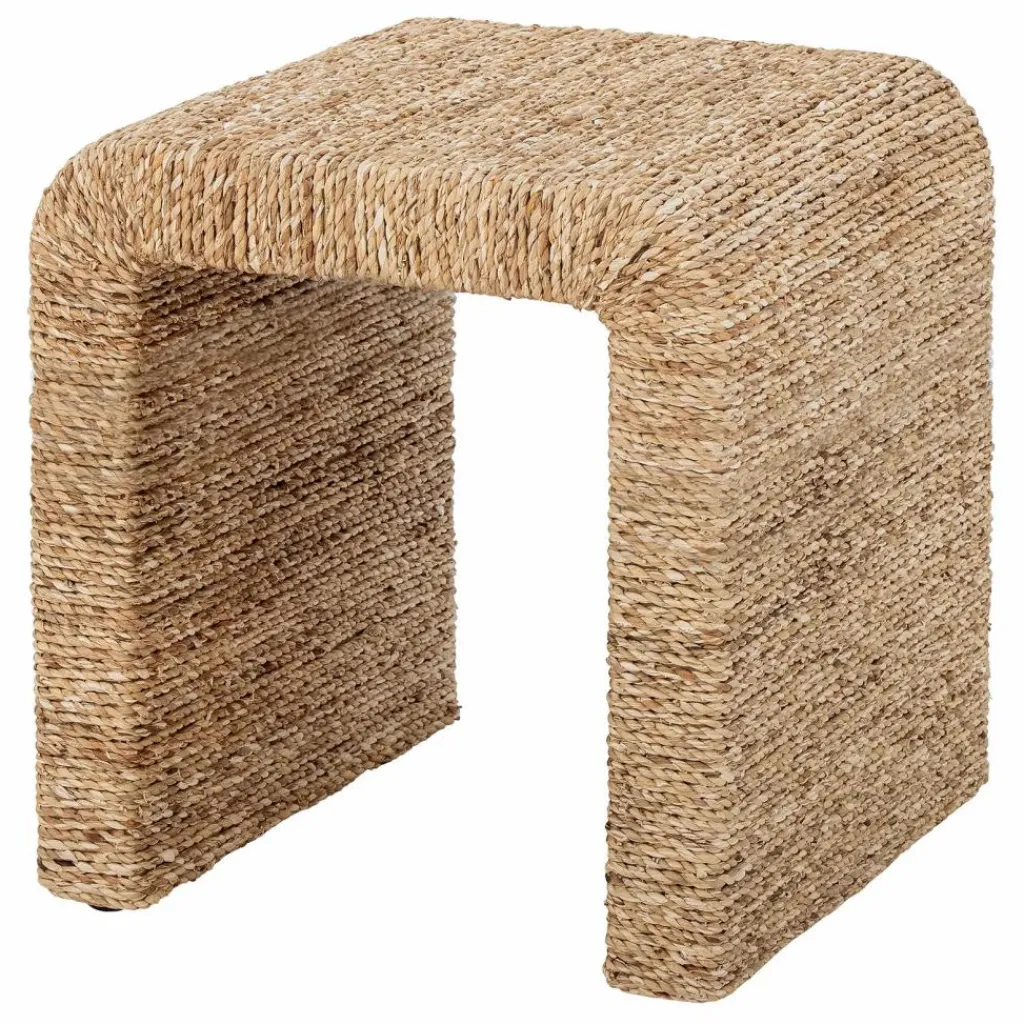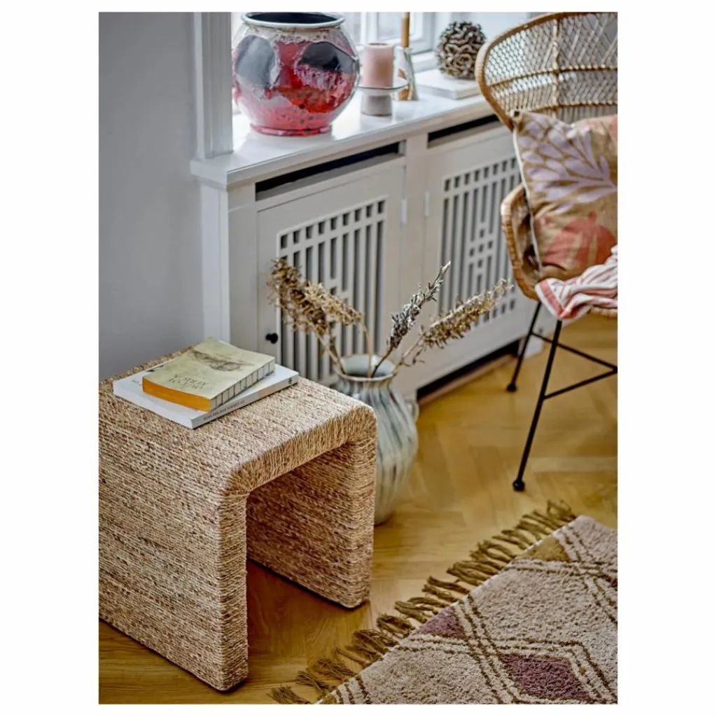 Ce tabouret Kien recouvert de rotin tressé peut être utilisé comme siège ou comme table d’appoint.