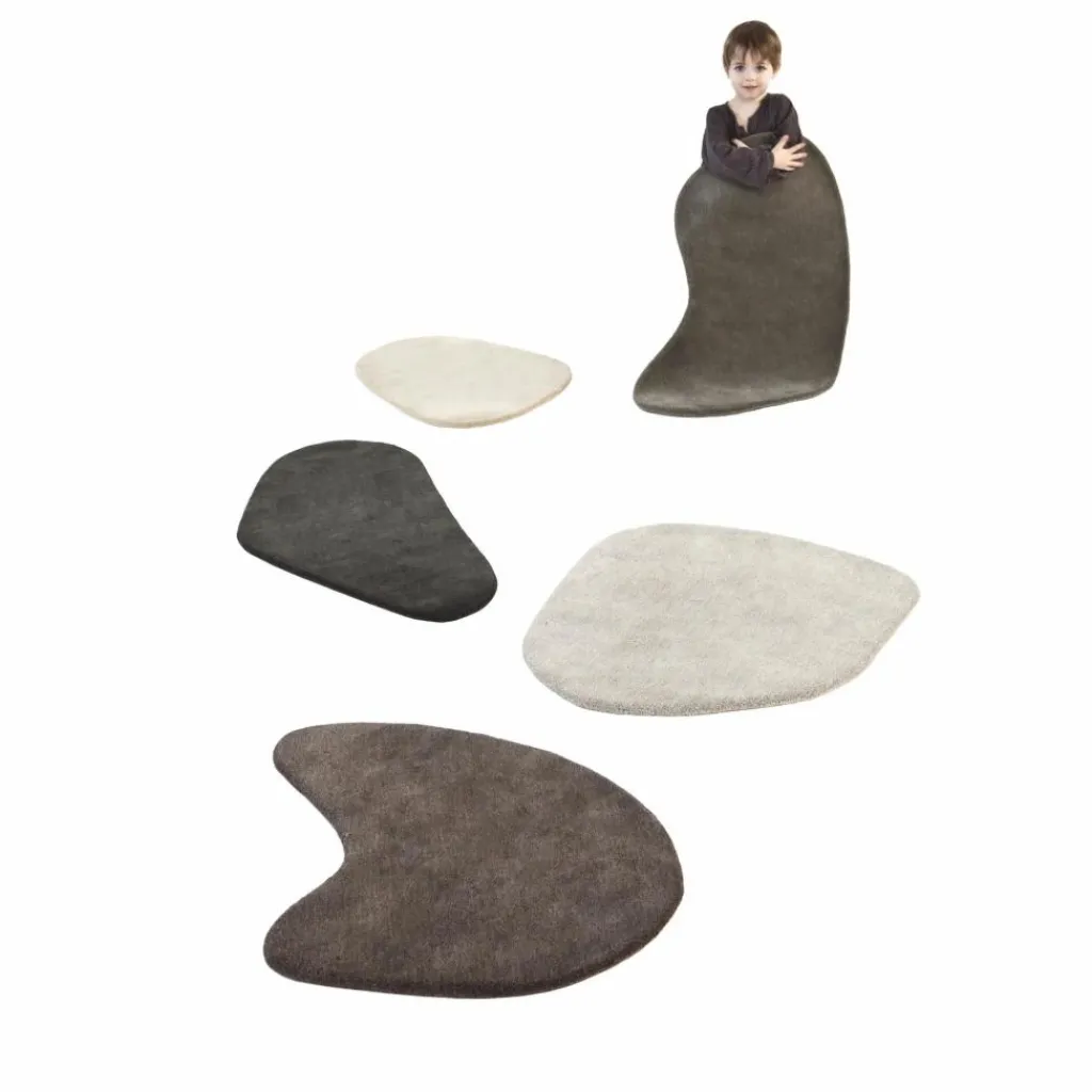 Ces pierres de laine créent un chemin à travers les pièces des maisons contemporaines, le moyen idéal pour faire entrer la nature à l’intérieur. Les tapis de la collection «Stone-wool» créent un lit de galets lisses qui s’adapte aux longs couloirs. Les contours irréguliers et les couleurs offrent une myriade de combinaisons pour les intérieurs, servant de tremplin à un flux imaginaire.