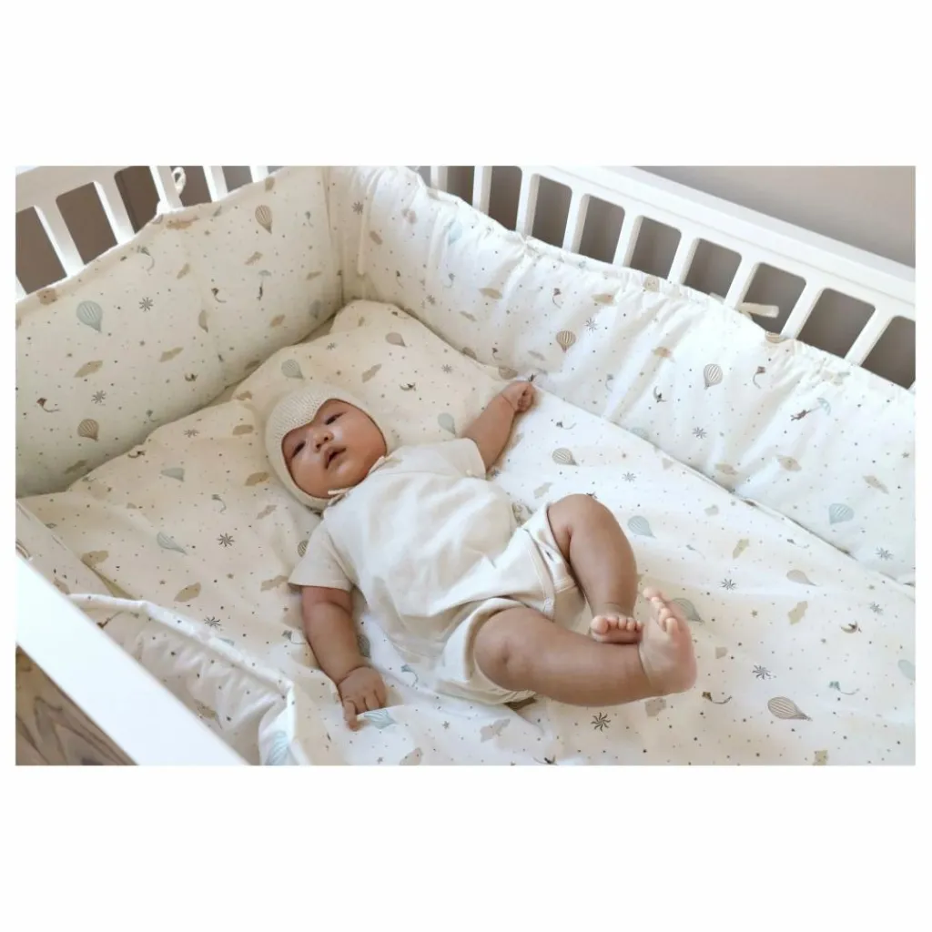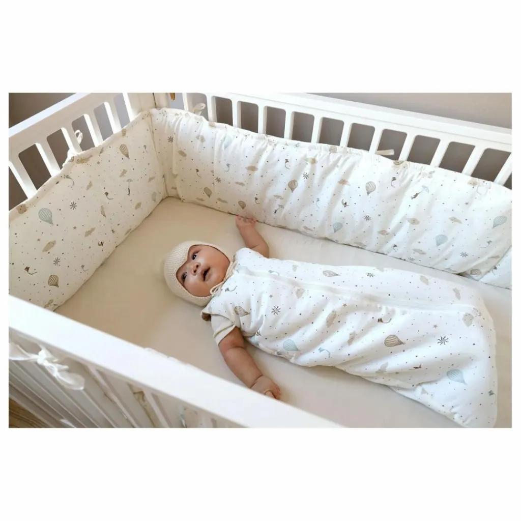 - Tour de lit souple et biologique avec un rembourrage doux à l’intérieur pour assurer le confort, la sécurité et le calme de votre bébé pendant qu’il dort. Le tour de lit s’adapte à un lit de bébé standard de 120 x 60 cm. Dimensions du produit : 30x365cm. Montage : Fixer à l’aide des rubans d’attache le long de l’extérieur du lit et ajuster. Couper les rubans qui dépassent pour des raisons de sécurité. Les rubans doivent être coupés lorsqu’ils ne sont pas utilisés, afin qu’ils soient hors de portée du bébé. Choisissez parmi plusieurs imprimés Cam Cam. Tour de lit en blanc et en marron.