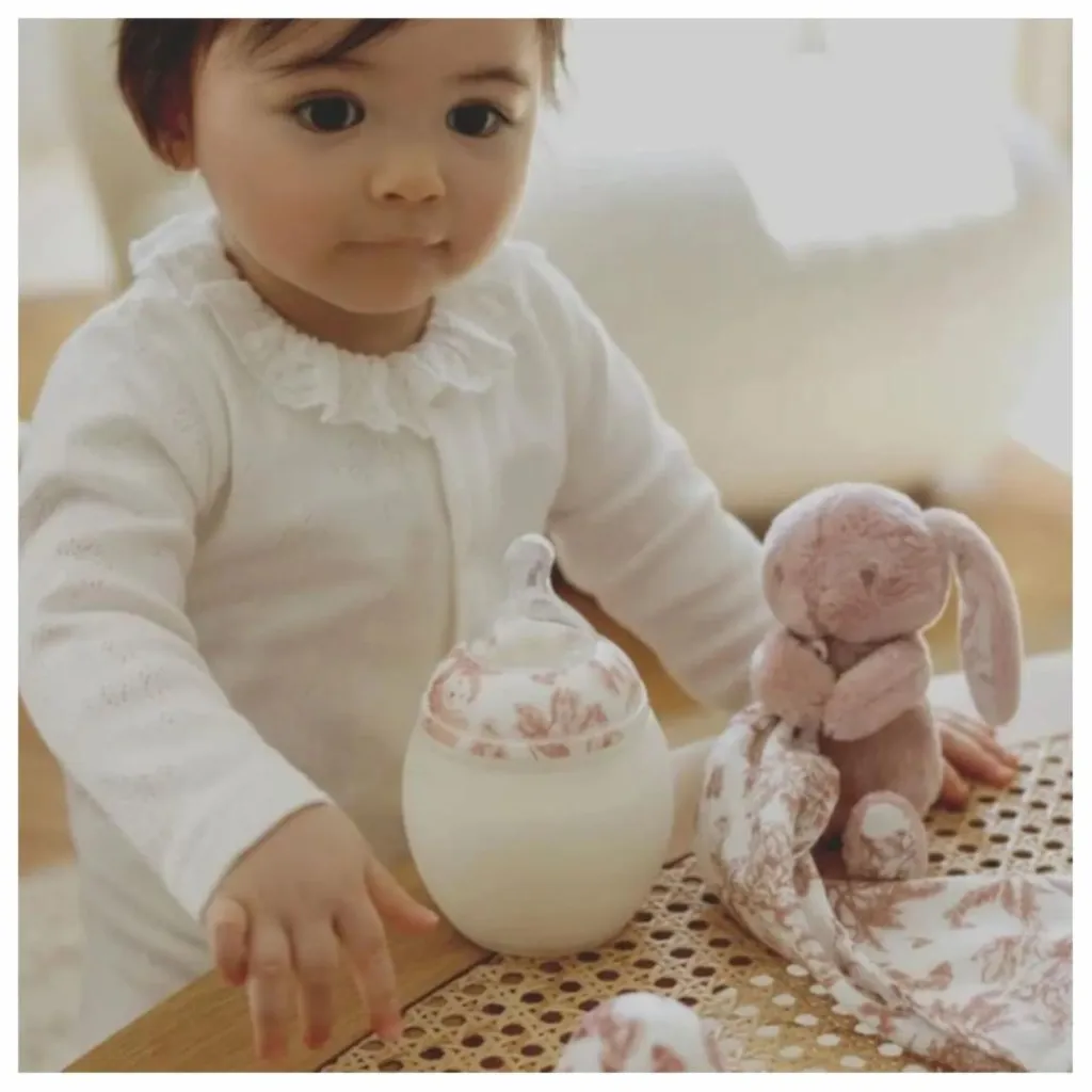 Élhée s’associe à Tartine et Chocolat, icône française de l’élégance enfantine, pour créer un coffret raffiné composé d’un biberon 150 ml et de Augustin le lapin, tous deux sublimés par le délicat motif inspiration Toile de Jouy, emblématique de la Maison Tartine et Chocolat. Cette édition spéciale est bien plus qu’un simple coffret : c’est une ode à l’enfance, un parfait mélange d’élégance et de poésie pour sublimer les moments partagés avec bébé.