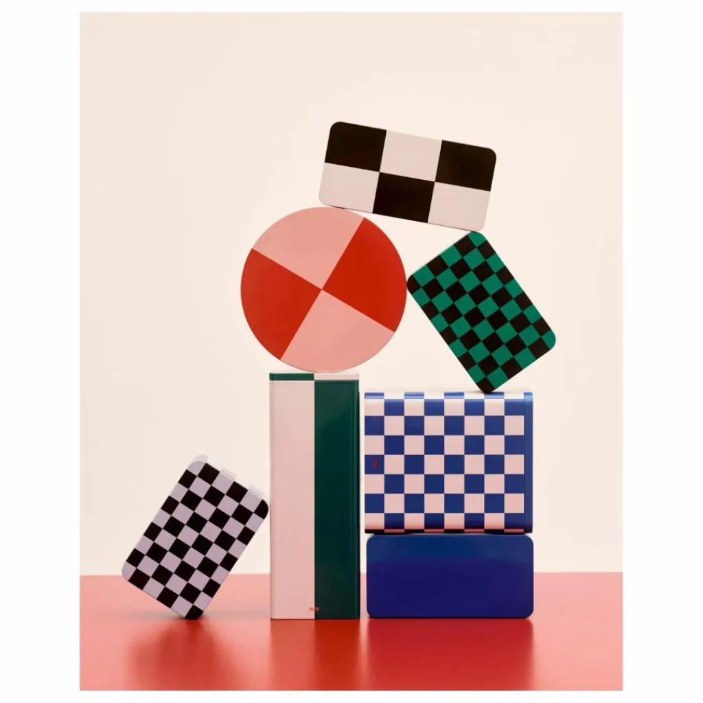 - Les Tin Containers de HAY sont une collection de boîtes de rangement fonctionnelles et décoratives, dotées de motifs à carreaux colorés et d’une finition brillante. Le couvercle et le récipient sont parfaitement alignés, ce qui donne un aspect élégant et homogène, tout en garantissant une fermeture hermétique adaptée à la conservation d’aliments secs. Disponibles dans un large assortiment de tailles, de formes et de motifs, les boîtes de conserve peuvent être placées de manière décorative sur des étagères ou des tables dans la maison pour ranger et organiser différents objets.