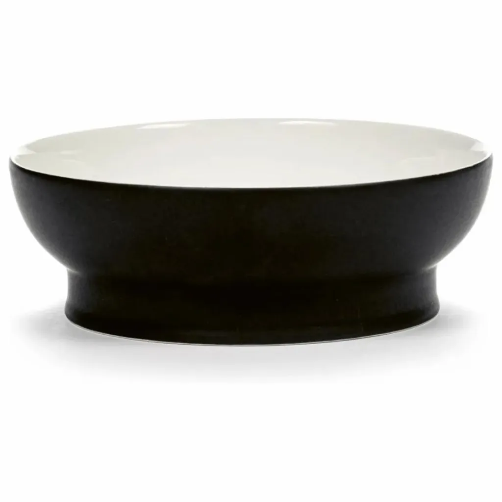 - Reposant sur un socle, les délicates bols de la collection Ra élèvent au propre comme au figuré les aliments et mets qui y sont servis. Le service se décline en trois variantes, par exemple avec une glaçure émail noir mat pour l’extérieur, et émail blanc cassé brillant pour l’intérieur. Le contraste entre mat et brillant, mais aussi l’opposition entre noir et blanc cassé sont typiques du style Ann Demeulemeester.