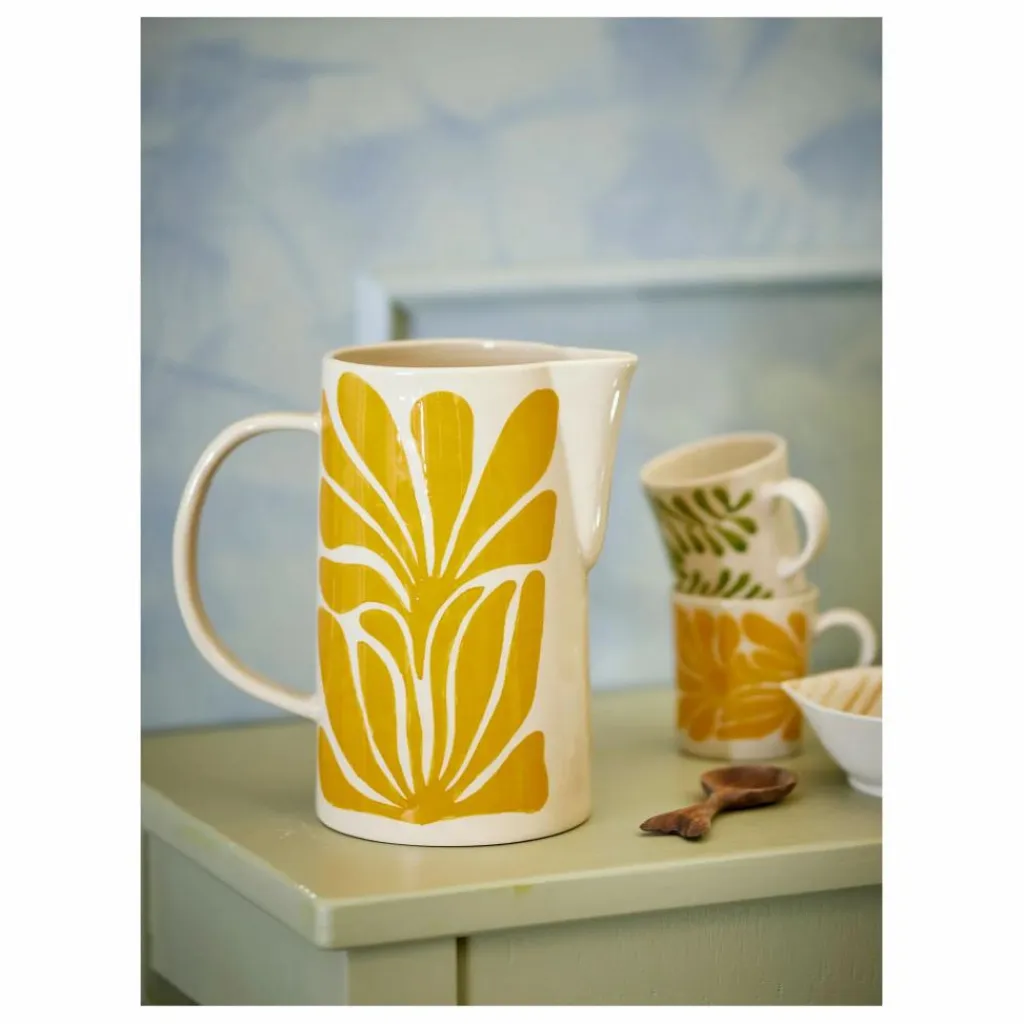 - Le Pichet Fauni de Creative Collection est fabriqué en grès et décoré d’un motif de feuilles peint à la main dans des tons jaunes chauds. La forme haute et les coups de pinceau distincts donnent au Pichet une expression vibrante et artistique. De petites variations dans le motif et la couleur rendent chaque Pichet unique.