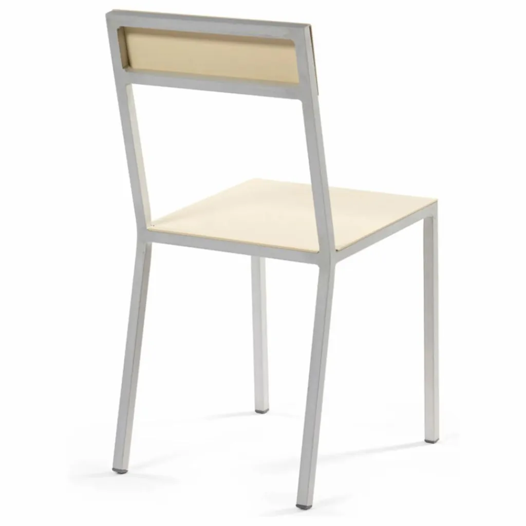 - Le couple de designers renommé Muller Van Severen a conçu sa chaise en alu en 2015 en tant que chaise d’extérieur pour le pavillon Bahreïn d’Anne Holtrop lors de l’exposition universelle de Milan. Depuis, elle est devenue l’un des modèles préférés des architectes et des amateurs de design qui ont un penchant pour le minimalisme ludique. Bien qu’elle ait été conçue à l’origine comme une chaise d’extérieur, nombreux sont ceux qui lui ont déjà trouvé une place à l’intérieur de leur maison. Le succès de cette chaise est dû à sa légèreté et à sa signature typique de Muller Van Severen. Les couleurs soigneusement sélectionnées sont appliquées à l’aide d’une laque protectrice contre les UV, afin de conserver leur éclat. Le cadre en aluminium non revêtu brille merveilleusement au soleil.