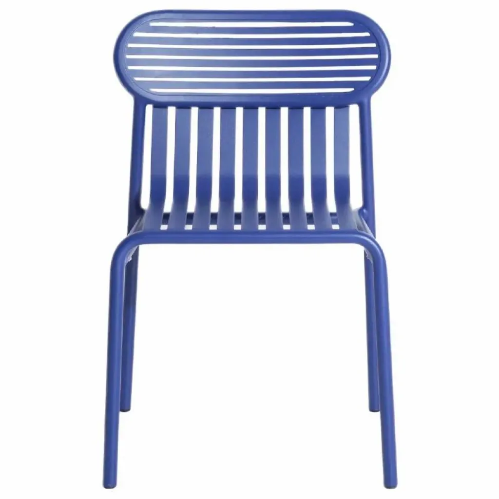 Cette chaise de jardin de la collection WEEK-END par Studio BRICHET-ZIEGLER combine esthétisme et fonctionnalité. Les assises ovales aux contours marqués créent un dossier au style graphique. Son design unique et confortable lui donne un charme intemporel. Fabriquée en aluminium, elle est à la fois robuste et légère. Empilable par 6, elle résiste à l’eau et aux UV, idéale pour une utilisation en bord de mer, avec une garantie de 5 ans.