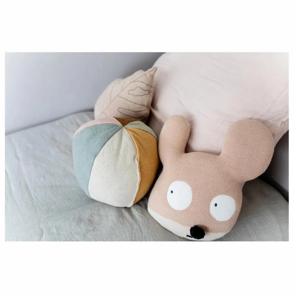 - Coussin multicolore doux de la taille d’un ballon de basket, combinant les couleurs principales de la collection EcoCity telles que Natural, Toffee, Vintage Blue, Vintage Nude, Olive et Honey. Fabriqué à partir de patchs en toile de coton doux cousus ensemble et remplis de polyfill doux et léger.