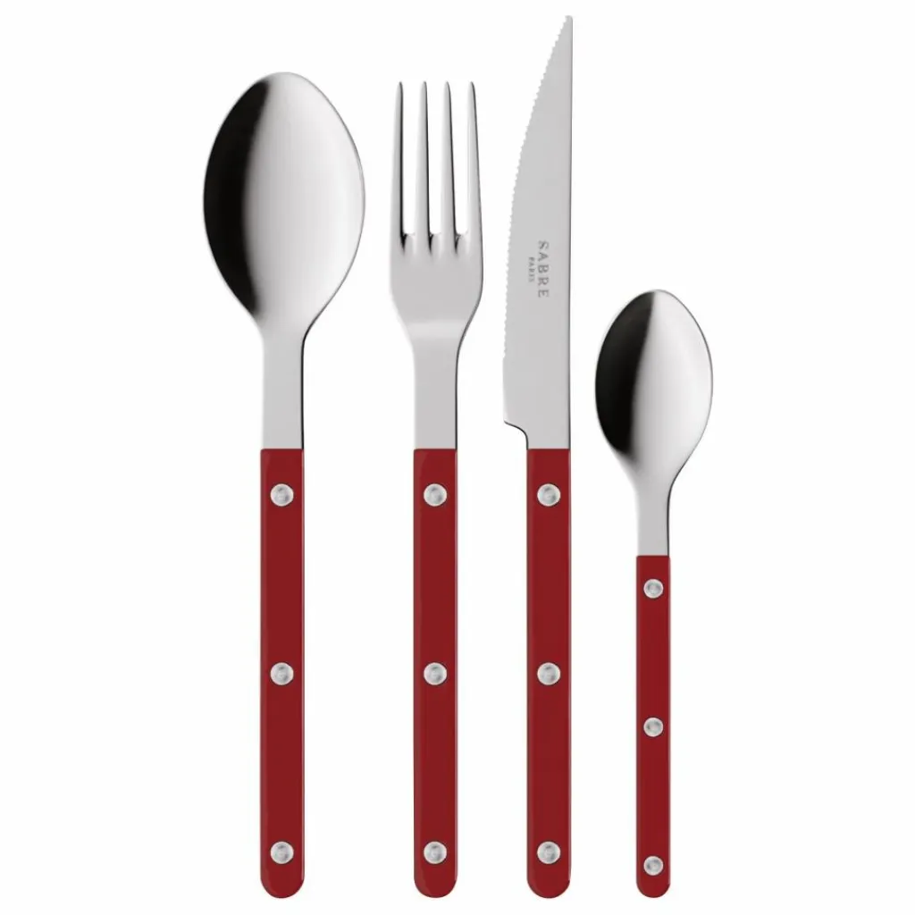 - La collection Bistrot s’inspire de certains de nos endroits préférés : restaurants, terrasses et cafés. En concevant ces couverts, notre objectif était de capturer l’essence de ces lieux tout en y ajoutant une touche contemporaine : le style est simple, les rivets sont visibles et les couleurs et les matériaux ressortent vraiment. La gamme comprend des couleurs allant du rouge au bleu, sans oublier de superbes matériaux aux effets corne ou écaille. Disponible avec une finition brillante ou vintage, nous sommes certains que vous apprécierez cette collection à la fois traditionnelle et contemporaine.