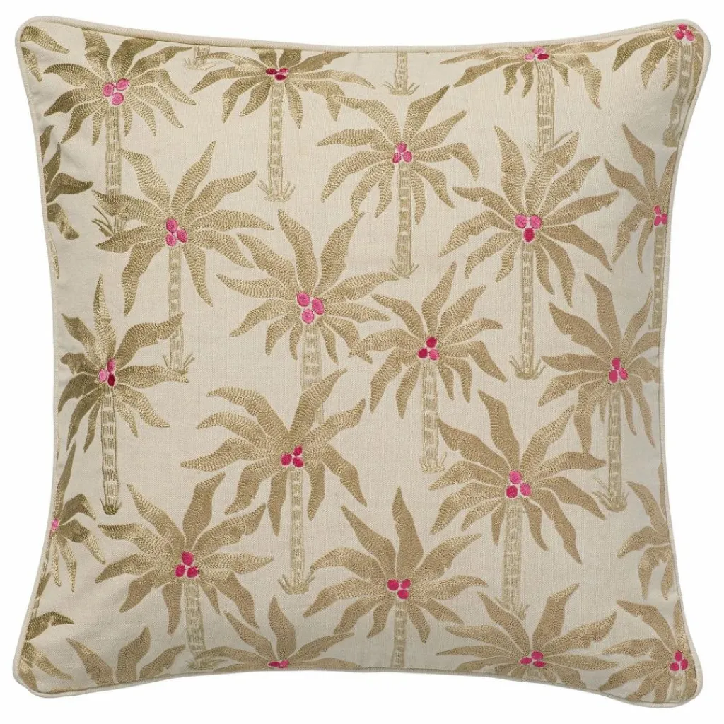 - Ce luxueux coussin, orné de palmiers brodés de façon complexe, évoque une élégance tropicale intemporelle, parfaite pour rehausser n’importe quel espace. L’artisanat détaillé ajoute de la profondeur et de l’art, transformant chaque coussin non seulement en un superbe accent décoratif, mais aussi en une retraite confortable pour se détendre et se relaxer. Cette housse de coussin est fabriquée à partir d’une toile de coton 100 % biologique. Le coton est une ressource naturelle et renouvelable, ce qui en fait un choix respectueux de l’environnement pour votre décoration intérieure.
