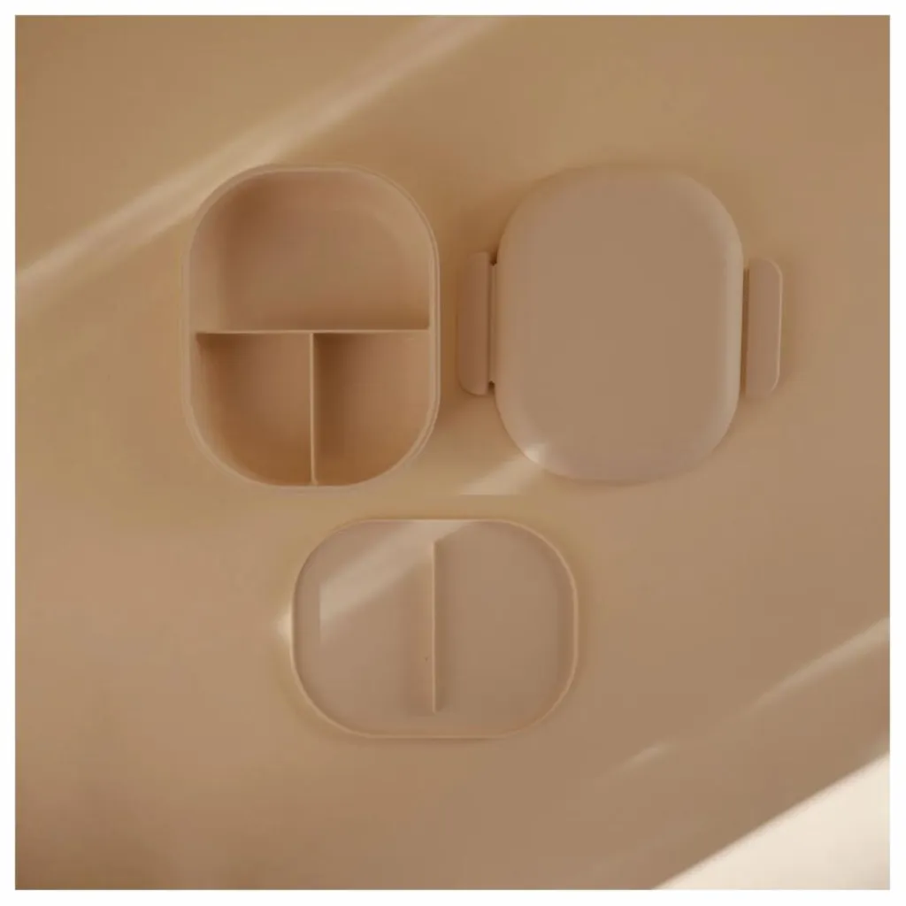 - Le Lunch Box de Mushie est la boîte idéale pour les repas sur le pouce. La cloison sépare les différents types d’aliments et les garde en sécurité jusqu’à l’heure du repas grâce aux compartiments intégrés et au couvercle hermétique.