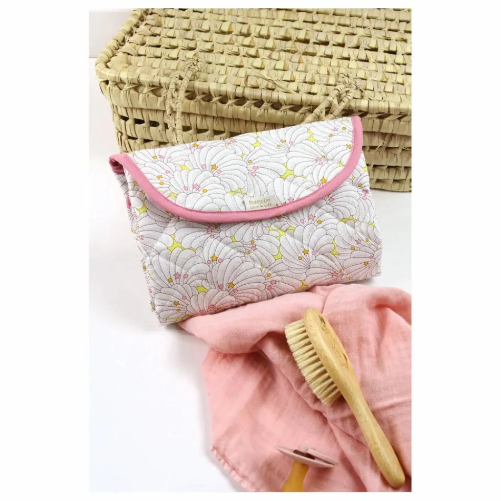 - Ce tapis de change nomade en tissu Liberty® molletonné, très pratique grâce à son intérieur plastifié.