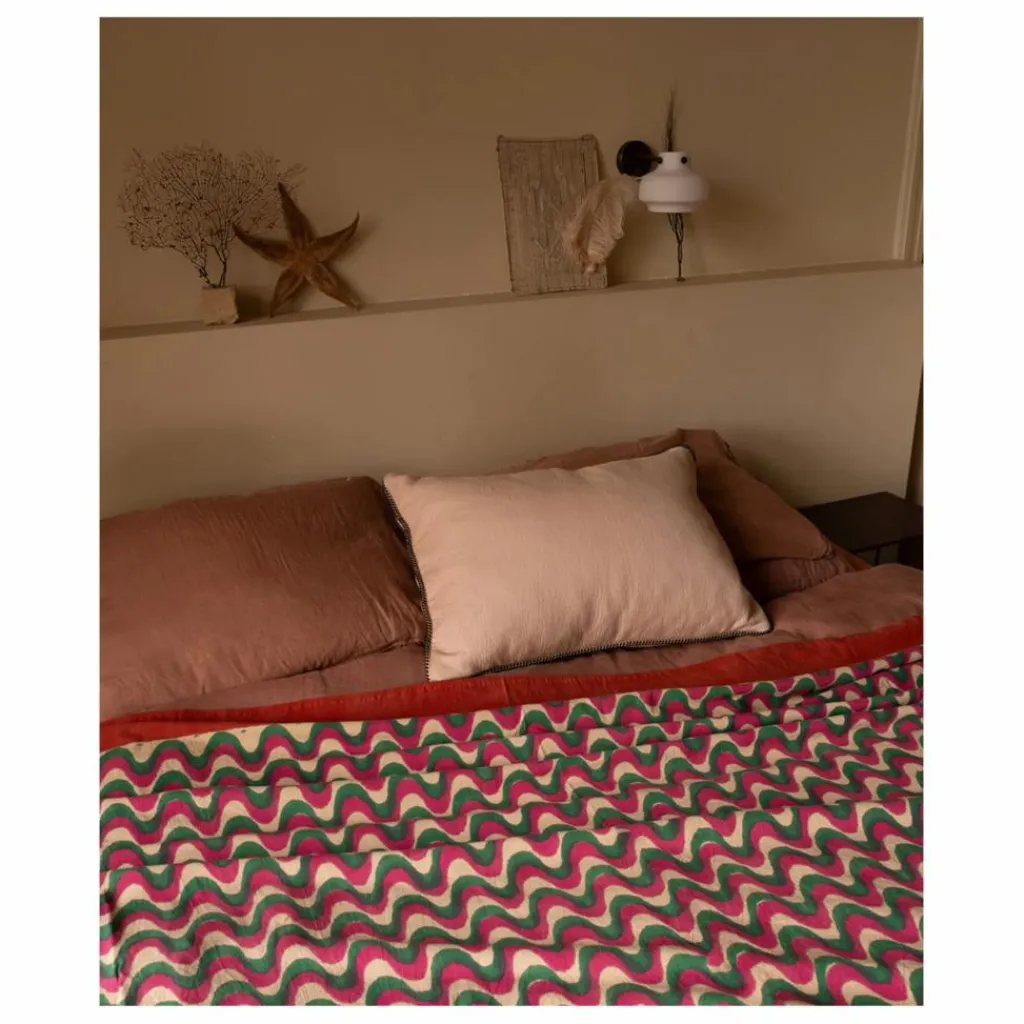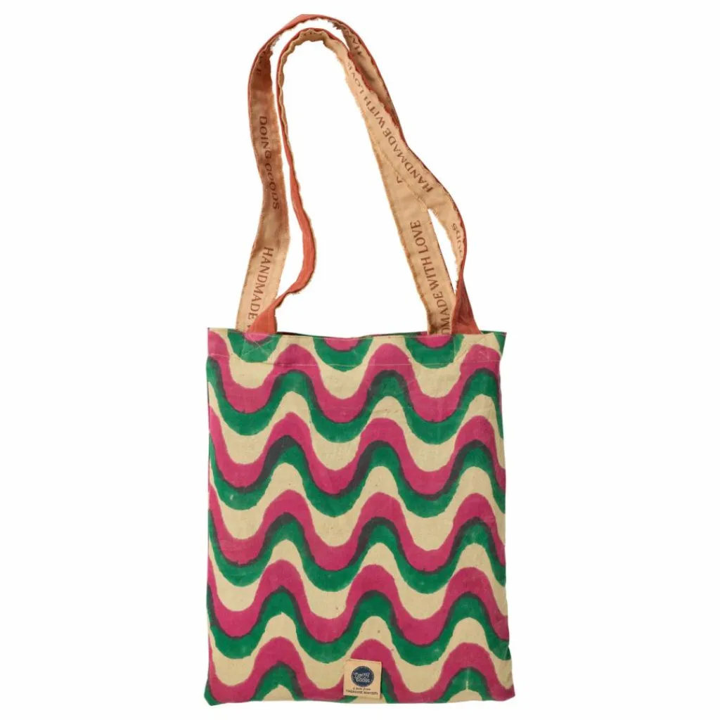 - Cette nappe, imprimée à la main, s’accompagne d’un joli sac fourre-tout assorti.