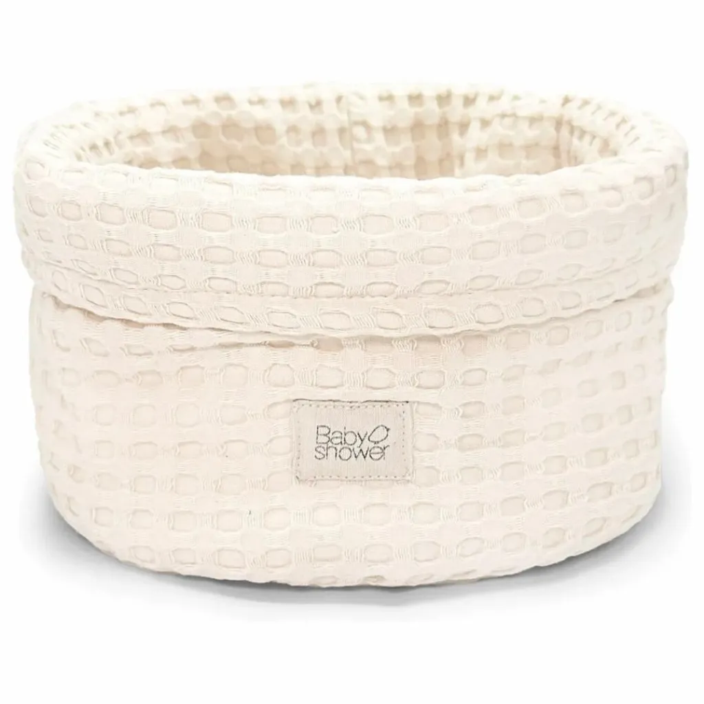 - Petit panier de base circulaire pour garder les produits de toilette du bébé. Fond intérieur plastifié. Deux tailles disponible