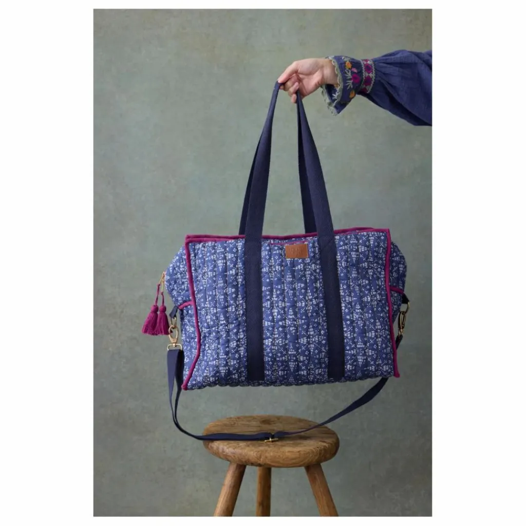 Imprimé fleuri en all-over et surpiqûres dorées.