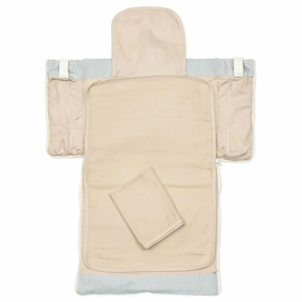 - Découvrez le summum de la commodité avec notre sac à langer pliable en toile biologique. Ce sac élégant et polyvalent se plie pour former un matelas à langer sur toute la longueur, qui peut également être utilisé comme un petit tapis de jeu pour une utilisation pratique en déplacement. Le sac à langer est doté de sangles d’épaule pour un transport facile et de sangles de poussette pour l’attacher à la poignée de la poussette. À l’intérieur, vous trouverez de nombreuses poches pour ranger tous les articles essentiels au change, ainsi que de petites poches extérieures zippées pour un accès rapide. La mousseline amovible à l’intérieur garantit une hygiène et une douceur accrues lorsque vous changez votre bébé, et elle est facile à retirer et à laver après utilisation. Parfait pour les parents qui apprécient à la fois la fonctionnalité et le style.