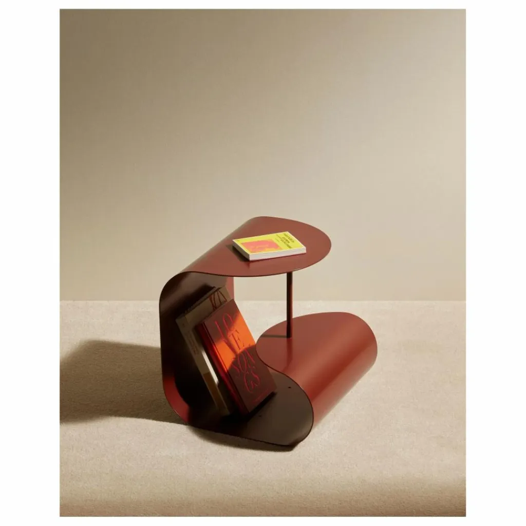 Pièce architecturale qui peut se suffire à elle-même, cette table basse aux deux pliages et à la tige centrale se métamorphose à l’envi en chevet, bout de canapé ou range-magazines.