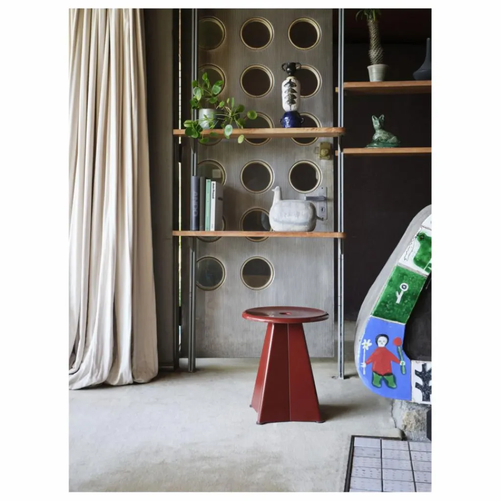 Jean Prouvé a imaginé le Tabouret Métallique en 1936 pour une maison d’éducation. La création élaborée dans les ateliers du designer n‘avait jamais été produite et est à présent fabriquée pour la première fois par Vitra. Pratique et fonctionnel, le tabouret se compose d’un châssis en tôle pliée, et pourra être utilisé aussi bien en assise qu’en petite table d’appoint.