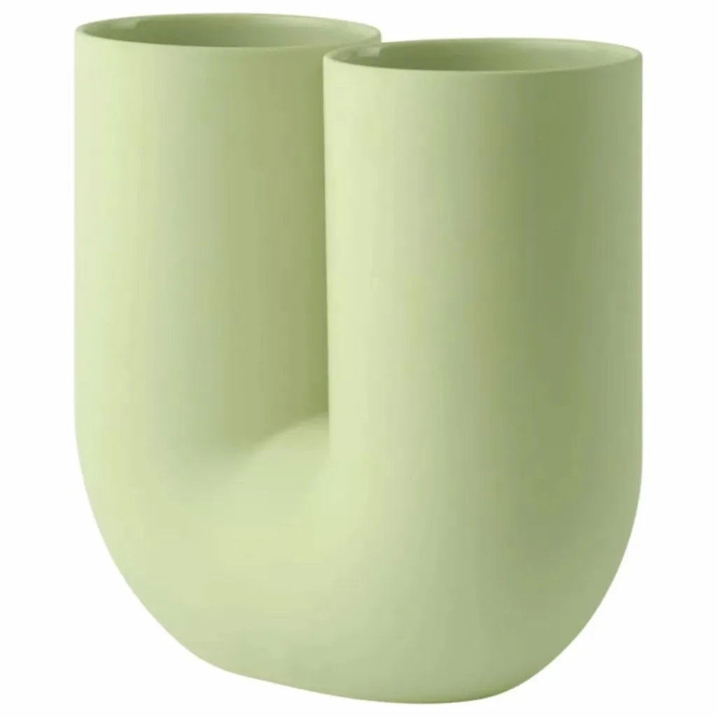 Le vase Kink redonne une forme contemporaine au classique vase à fleurs, en combinant l’artisanat traditionnel avec un langage ludique. Grâce à sa double ouverture, Kink ajoute une atmosphère sculpturale à la pièce, même lorsqu’il n’est pas utilisé. La porcelaine émaillée à l’intérieur apporte une touche raffinée.