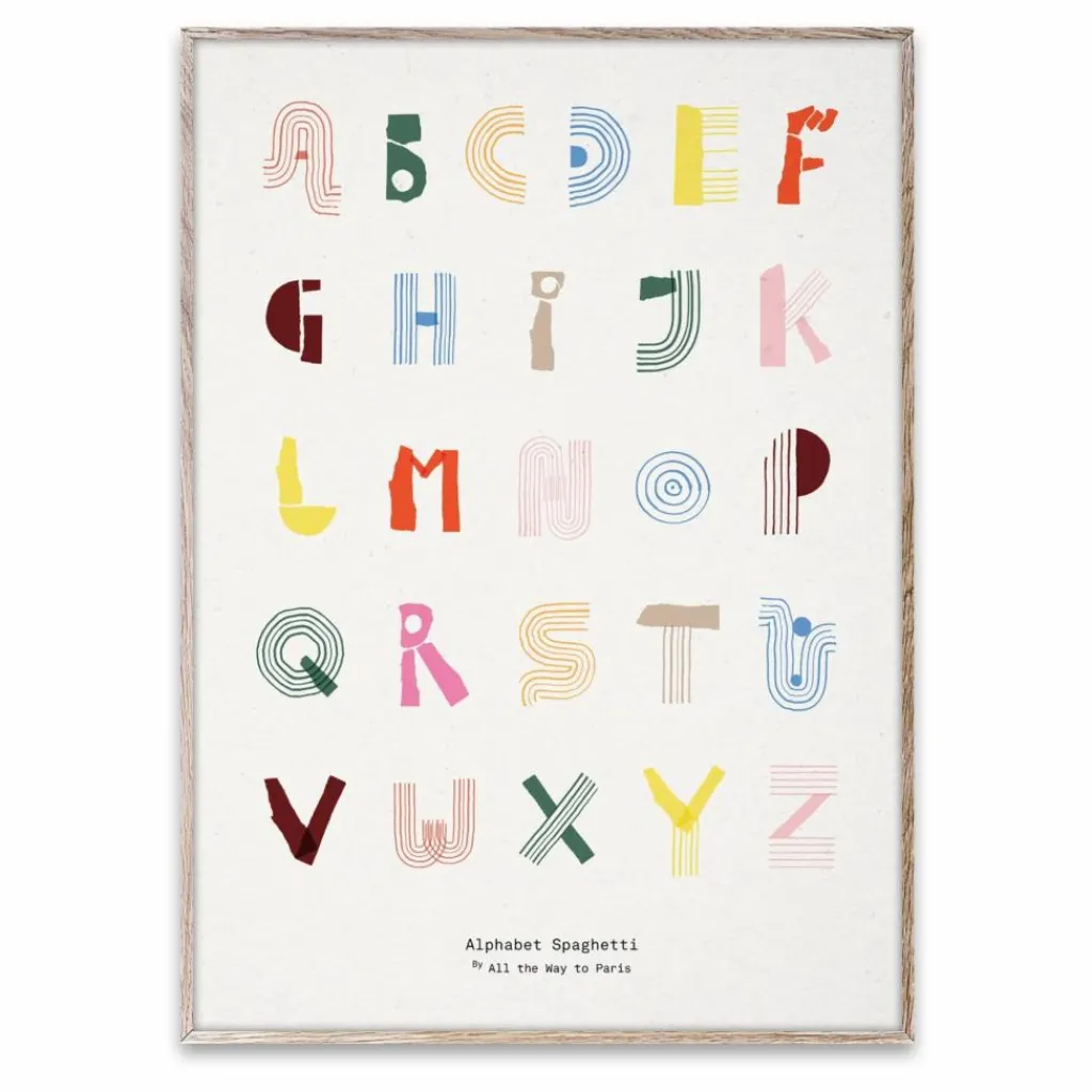 Apprenez et illustrez l’alphabet de manière amusante avec le tableau Alphabet de Mado. Votre enfant possède une mémoire visuelle ? Profitez-en et affichez ce poster ludique, dont les lettres sont représentées en forme de spaghettis.