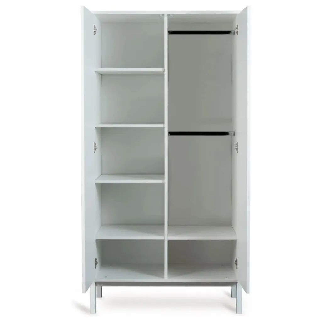 Les deux portes battantes de l’armoire s’ouvrent d’un léger poussé grâce au système push, à la fois fonctionnel et esthétiquement attrayant. Équipée de trois étagères mobiles et de deux tringles à vêtements, cette commode permet une organisation optimale de l’espace.