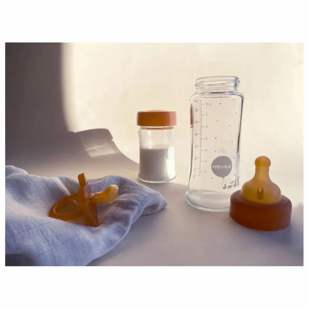 Entièrement fabriqués en caoutchouc naturel, l’intérieur de la tétine et du capuchon est moulé pour s’adapter parfaitement au goulot du biberon sans que le lait ne se répande. Les biberons à col large sont particulièrement recommandés pour le lait maternel, car le large col du biberon permet un accès facile au lait.