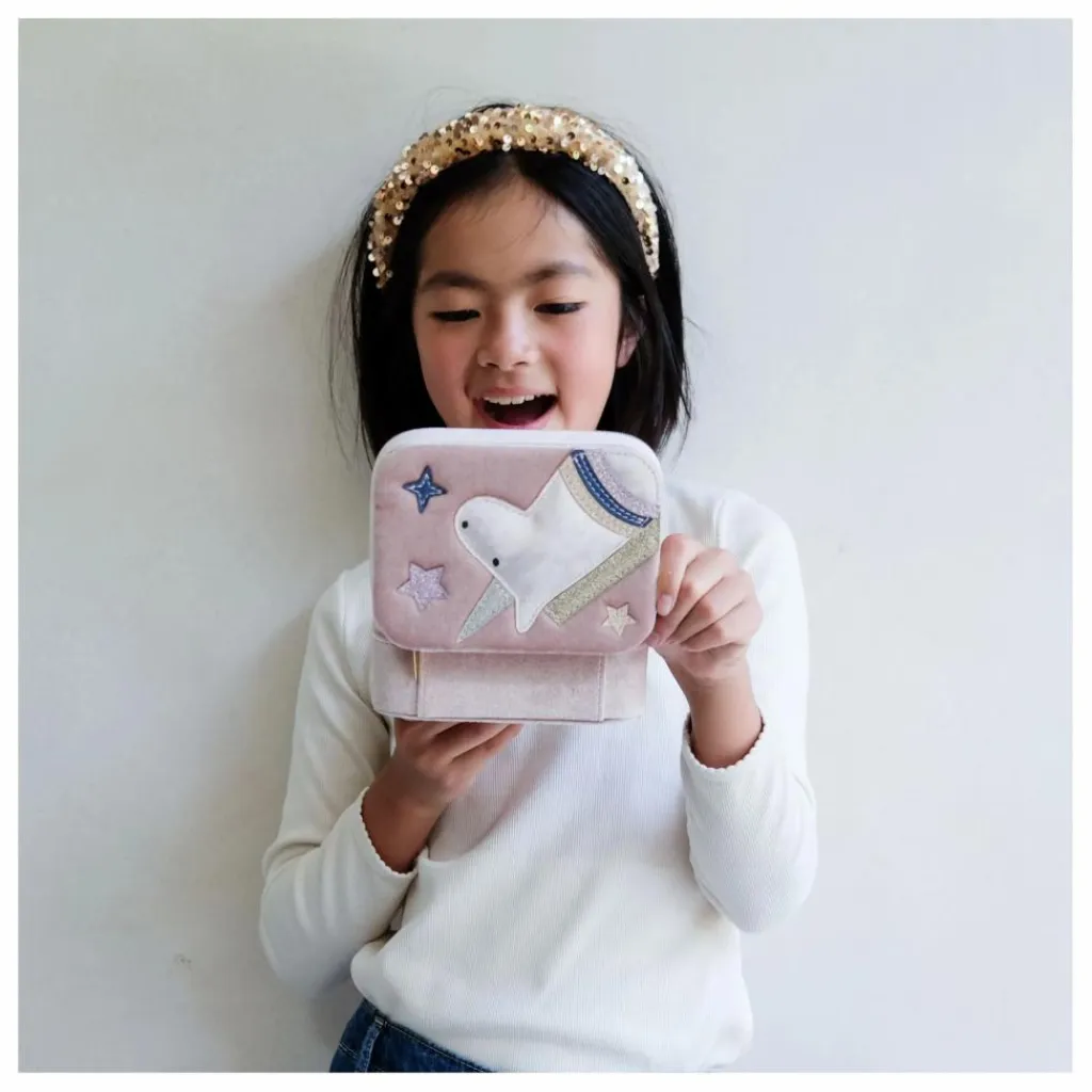 - – Fabriqué en velours rose super doux avec un motif de licorne et d’étoile dans un mélange de similicuir, de paillettes et de velours – Fermeture à glissière – Pochette élastiquée, quatre crochets et trois autres compartiments
